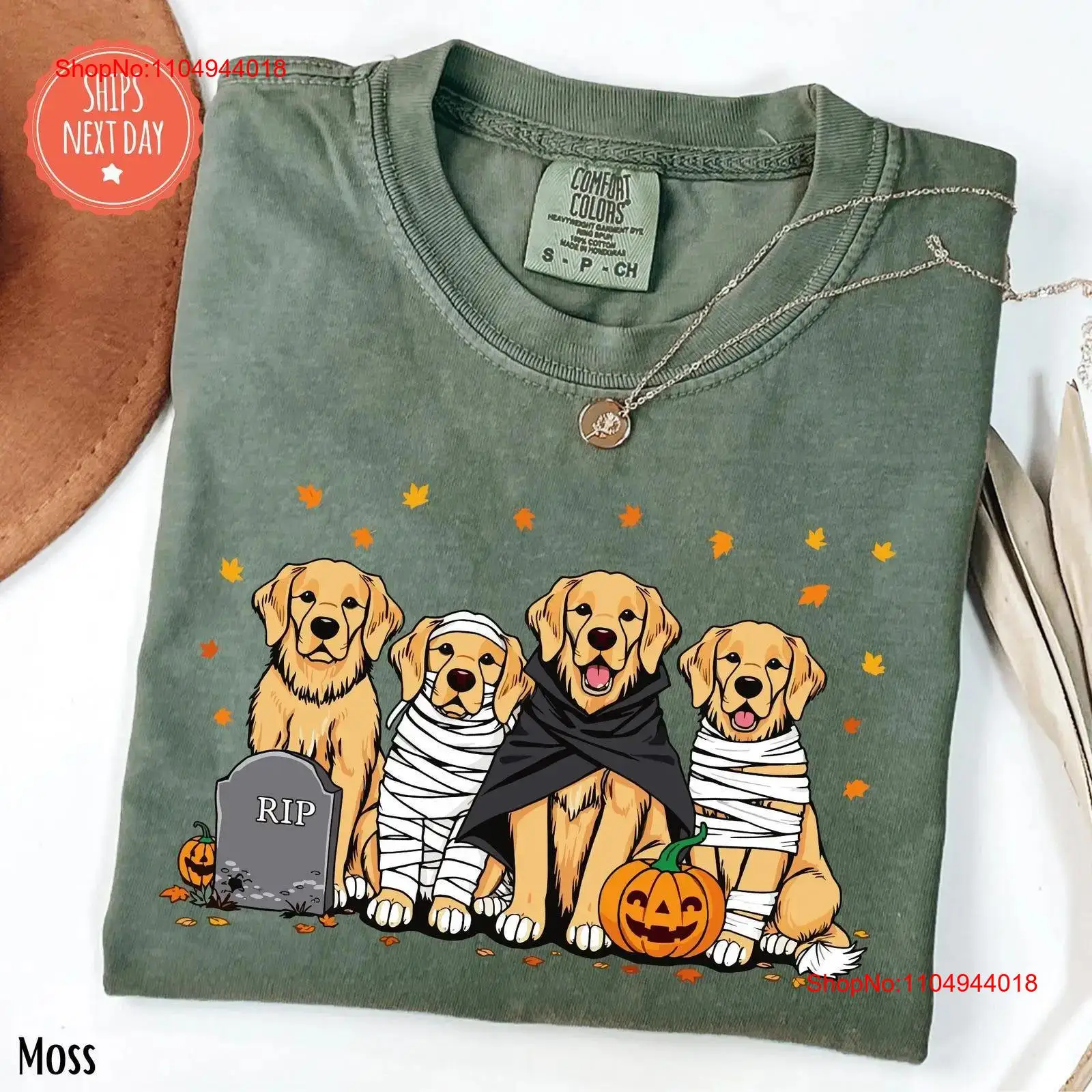 Halloween Dog T Shirt Golden Retriever Ghost Dogs Cute vintage Washed Versatile graphic Stretched Casual Comfortable