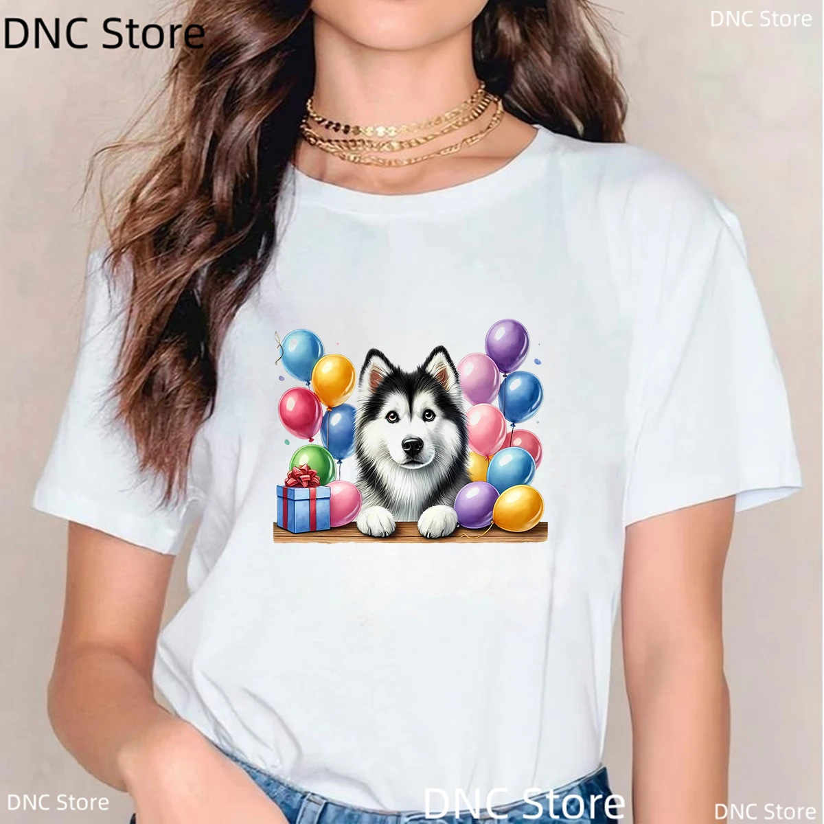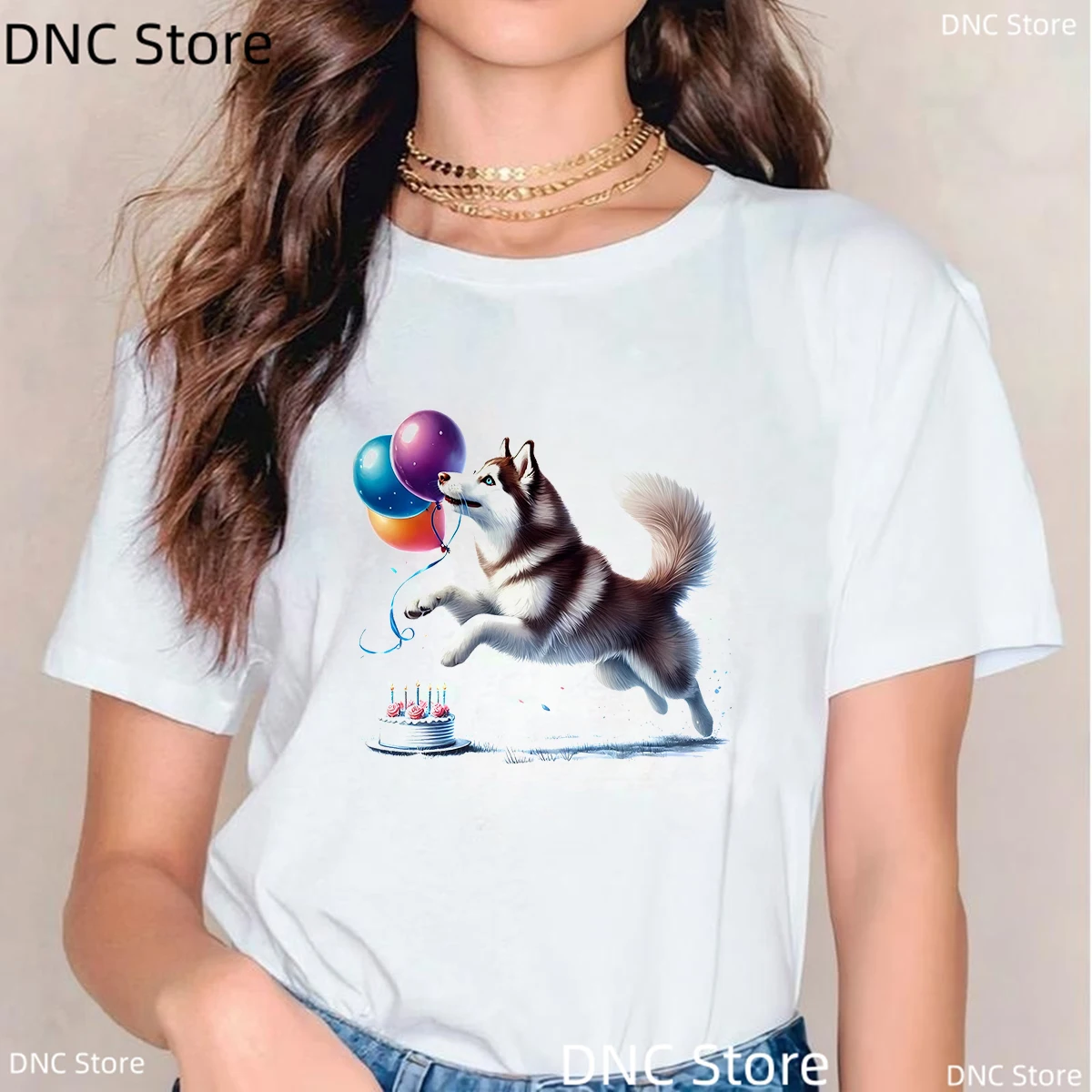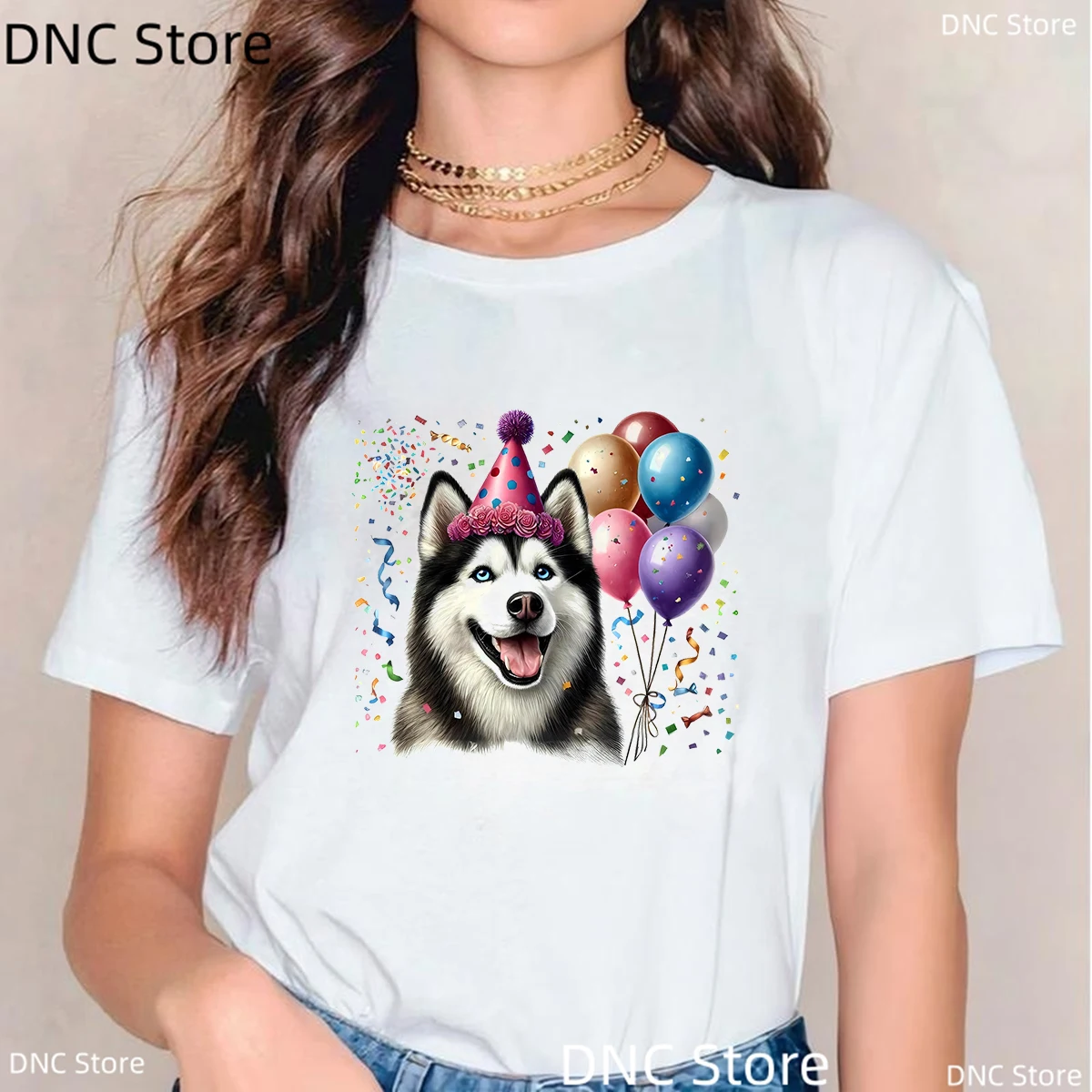 Husky Birthday T-Shirt Women Funny Husky Dog Lover Shirt Fashion Birthday Party Tshirt 00s Girl Tshirt Summer Short Sleeved Tops