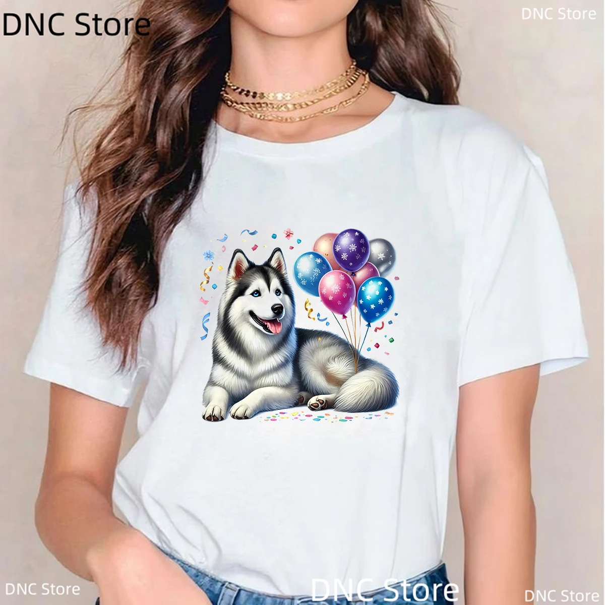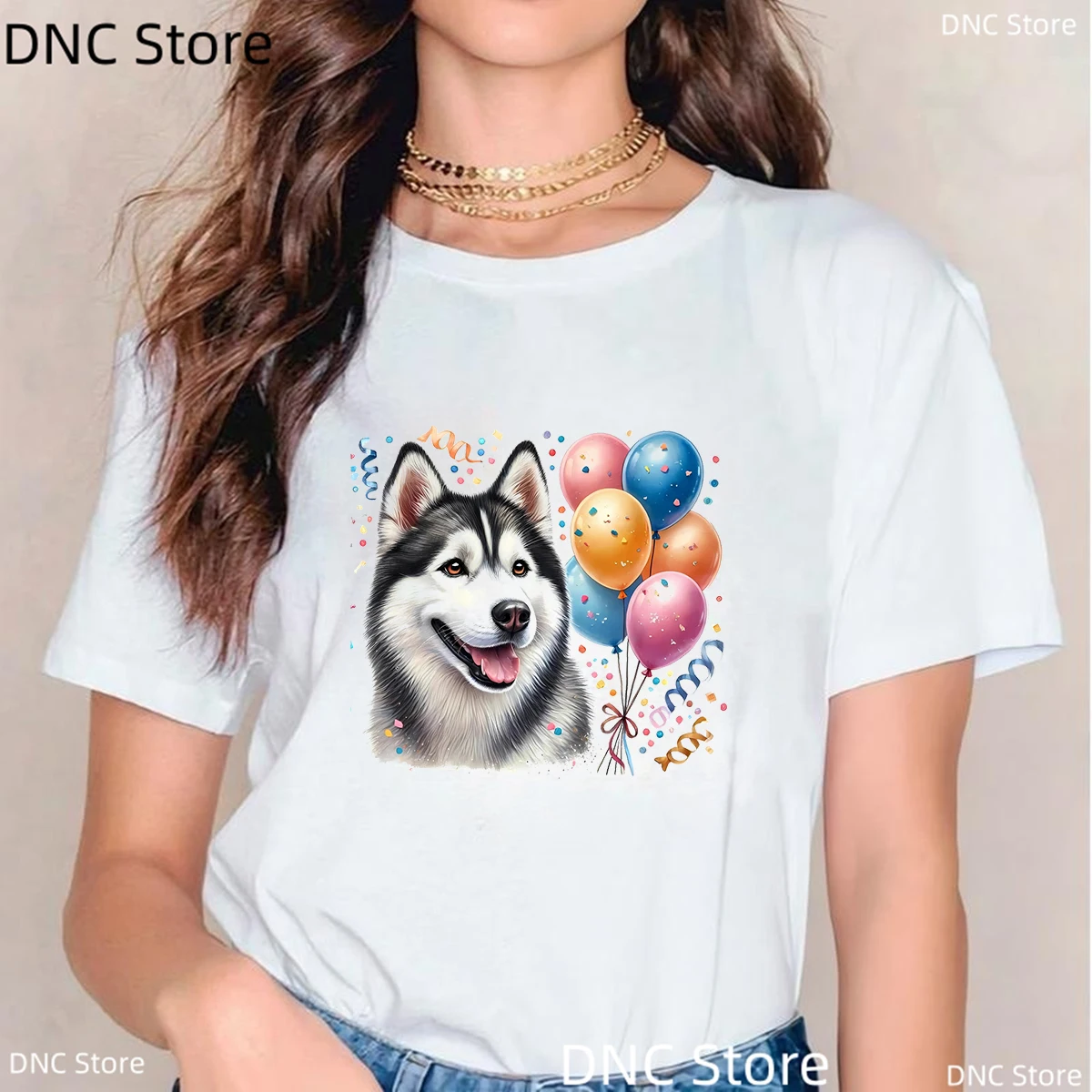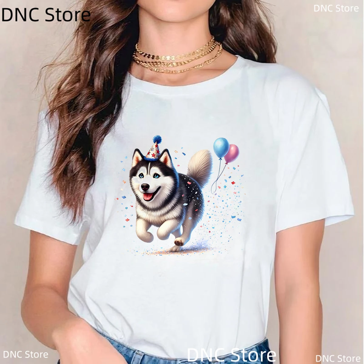 Husky Birthday T-Shirt Women Funny Husky Dog Lover Shirt Fashion Birthday Party Tshirt 00s Girl Tshirt Summer Short Sleeved Tops